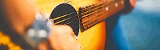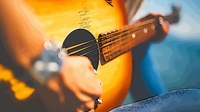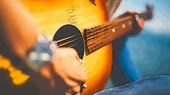 die ihre Gitarre auf dem Rücken mit sich trug.