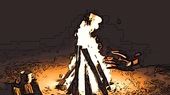 Ein Hippie-Mädchen mit fliederfarbenem Rock weinte bitterlich.